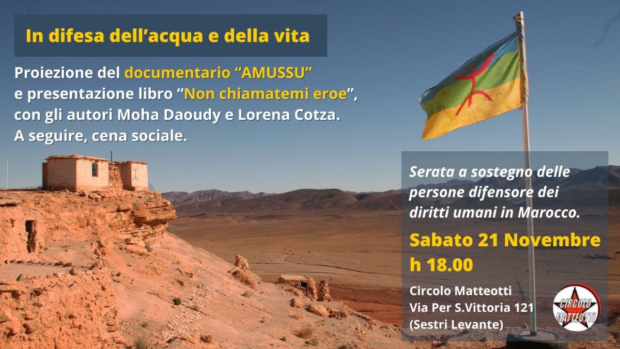“Non chiamatemi eroe” raccoglie 14 storie di donne, uomini e comunità coraggiose che hanno scelto di difendere in modo nonviolento i diritti umani e i propri territori dai soprusi dei potenti. Sono testimoni scomodi, pietre d’inciampo, persone comuni che – spesso lontano dai riflettori e in aree remote del pianeta – rischiano la vita per rivendicare i diritti collettivi e la dignità delle loro comunità. Tra di loro ci sono Nurcan Baysal, giornalista che denuncia le discriminazioni sofferte dai curdi in Turchia; Saydia Gulrukh, attivista che in Bangladesh non si stanca di chiedere un giusto salario e maggiore sicurezza sul lavoro; Veronika Lapina che in Cecenia sfida una cultura retriva per difendere le persone LGBT; e Moha Tawja – ospite d’onore di quest’evento – che insieme alla comunità di Imider (Marocco) per anni ha portato avanti una coraggiosa battaglia proteggere le preziosi fonti d’acqua del suo territorio, minacciate da una miniera d’argento.
