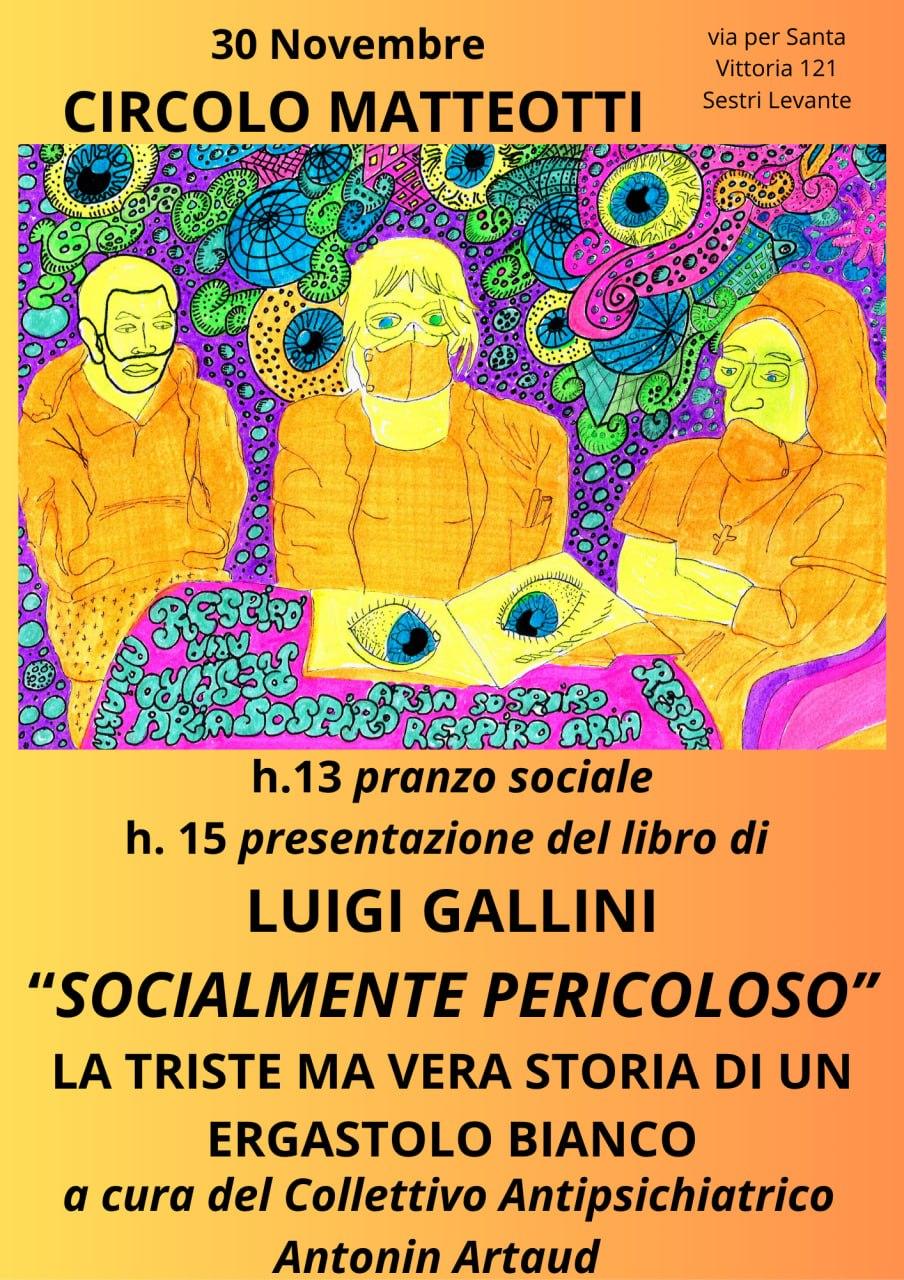presentazione del libro di Luigi Gallini “socialmente pericoloso” a cura del collettivo artaud Dettaglio eventi Data: 30 Novembre 2025 13:00 – 20:00 Categorie: dibattito, libri, pranzo sociale